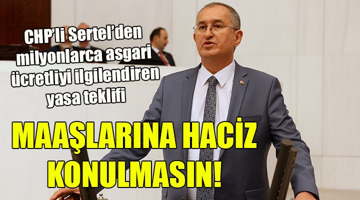 Türkiye’deki asgari ücretin birçok ülkenin gerisinde oldu?unu ve asgari ücretlilerin asgari ya?am standartlar?nda ya?amaya çal??t???n? vurgulayan CHP ?zmir Milletvekili Atila Sertel, “Yasalar?m?za göre nafaka ve SGK prim borçlar? d???nda emekli maa?lar?na emeklinin onay? olmadan haciz konulam?yor. Yine ki?inin ya?am?n? sürdürebilmesi için gerekli olan e?yaya, ta??n?r, ta??nmaz mallar?na, çiftçi ise süt veren hayvan?na, tarlas?n? sürdü?ü tek traktörüne haciz yoluyla el konulam?yor. Hal böyle olunca ülkedeki en dü?ük ücret anlam?na gelen asgari ücretle çal??anlar?n maa?lar?na da haciz konulmamas? sosyal devletin gere?idir” dedi.
