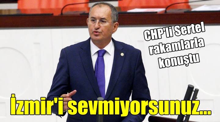 SONKALE?ZM?R-CHP ?zmir Milletvekili Atila Sertel, ?zmir'in ülke ekonomisindeki yeri ile ilgili çarp?c? bilgiler verip hükümeti ele?tirdi. Sosyal medya payla??m?nda ?zmir'den toplanan verginin yüzde 10.9 olmas?na ra?men kente yap?lan yat?r?m?n yüzde 2.19'da kald???n? vurgulayan Sertel, "Eyyy en tepede ki adam ve ?ürekas? ?zmir’i ve ?zmirliler’i hiç ama hiç sevmiyorsunuz. Rakamlar yalan söylemez. ?zmir 10 veriyor 2 al?yor. Türkiye genelindeki verginin yüzde 10,9'u ?zmir’den toplan?rken, ülke genelindeki kamu yat?r?mlar?ndan ald??? pay yaln?zca yüzde 2,19 oldu" aç?klamas?n? yapt?.