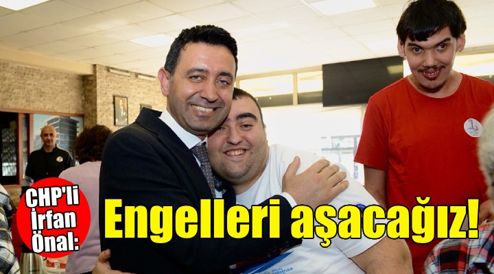 ?rfan Önal, “Göreve geldikten sonra engelleri birlikte a?aca??m?z?n sözünü veriyorum. Engelsiz Bayrakl? için mücadele etmeye haz?r?m. Otizmli bireylerin geli?imine katk? sa?lamay?, spor ve motor becerilerini geli?tirmeyi, bili?sel, sosyal, duyusal ve fiziksel geli?imlerini desteklemeyi hedefliyoruz. Engellilerin belediye hizmetlerine, kentin imkânlar?na kolay ve güvenli bir ?ekilde eri?mesini sa?layacak düzenlemeler yapaca??z. Sokaklar?, kald?r?mlar?, bina giri?lerini, ula??m hatlar?n? bu amaçla Avrupa Birli?i (AB) standartlar?na yükseltece?iz” diye konu?tu.