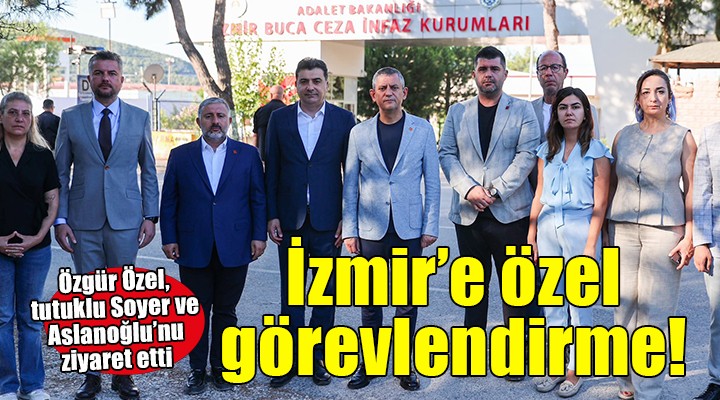 CHP Genel Ba?kan? Özgür Özel, ?zmir'de Buca ?nfaz Kurumu’nda tutuklu CHP ?zmir ?l Ba?kan? ?enol Aslano?lu ve Eski ?zmir Büyük?ehir Belediye Ba?kan? Tunç Soyer'i ziyaret etti. Özel'e ziyaretinde Buca Belediye Ba?kan? Görkem Duman ile CHP Buca ?lçe Ba?kan? Ça?da? Kaya da e?lik etti.