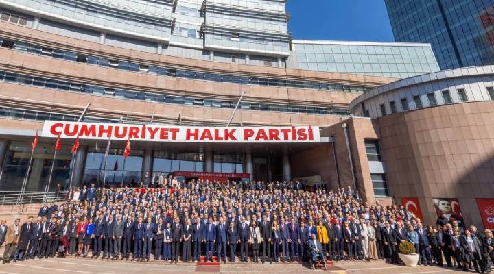 CHP Lideri Özel’in konu?mas?n?n ard?ndan kat?l?mc?lar CHP Genel Merkezi önünde aile foto?raf? çektirdi.
