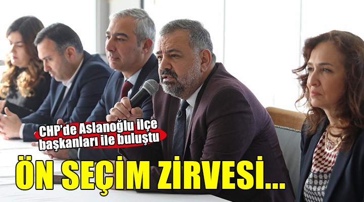 SONKALE?ZM?R- CHP ?zmir ?l Ba?kan? ?enol Aslano?lu, Kar??yaka'da 30 ilçe ba?kan?yla bir araya geldi. Kar??yaka Belediye Ba?kan? Y?ld?z Ünsal'?n ev sahipli?inde gerçekle?tirilen toplant?da ön seçimle beraber ilçelerde yap?lan çal??malar de?erlendirdi.