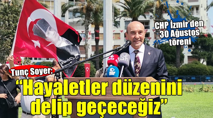 CHP ?zmir ?l Ba?kanl???'n?n 30 A?ustos Zafer Bayram?'n?n 101. y?l? dolay?s?yla düzenledi?i törende konu?an ?zmir Büyük?ehir Belediye Ba?kan? Tunç Soyer, "Geçmi?ten ald???m?z ald???m?z ilham ve içimizde asla tükenmeyecek umutla bu hayaletler düzenini delip geçece?iz" dedi. CHP ?zmir ?l Ba?kan Vekili Münir Sirhan Özen de  "Vatan?; cumhuriyetle hesapla?ma, milli bayramlar? unutturma, do?malar ve liyakatsiz kadrolarla yönetmeye çal??anlara b?rakamay?z" dedi..