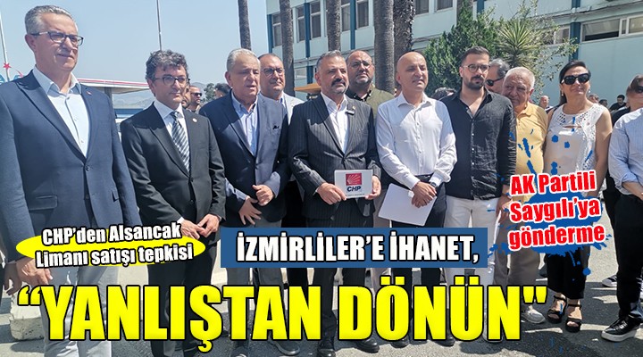 SONKALE?ZM?R-CHP ?zmir ?l Ba?kanl???, Birle?ik Arap Emirlikleri'nden bir firmaya sat??? gündemde olan Alsancak Liman? ile ilgili bas?n aç?klamas? düzenledi. CHP ?zmir ?l Ba?kan? ?enol Aslano?lu, CHP ?zmir milletvekilleri Mahir Polat, R?fat Nalbanto?lu, Yüksel Ta?k?n ile Gaziemir Belediye Ba?kan? Halil Arda ve partililer Alsancak Liman? giri?inde bir araya gelerek hükümete "Yanl??tan dönün" ça?r?s? yapt?.