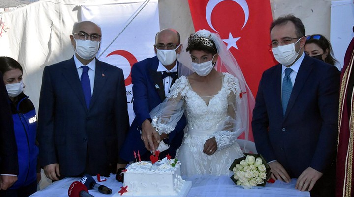 Türk K?z?lay? Afet Yönetimi Genel Müdür Yard?mc?s? ?brahim Özer ise, "?zmirlilere tekrar geçmi? olsun dileklerimi sunuyorum. Umar?m benzer ac?lar? ya?amay?z. ?çinden geçti?imiz ac bir dönem var, hepimiz hüzünlüyüz. Ama hayat her zaman bir yerden sonra devam ediyor, afetlerde de öyle. Burada da bir çiftimizin talebini K?z?lay Kar??yaka ?ubemiz haber ald?. Hemen gelinlik ayarland?, ihtiyaçlar kar??land?" ?eklinde konu?tu.