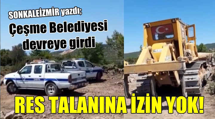 SONKALE?ZM?R-Çe?me Ild?r? Mahallesi'nde yüzlerce hektar alan?n küle döndü?ü yang?n sonras?, rüzgar enerji santrallerine (RES) yol açmak için i? makineleri yol açma çal??mas? ba?latm??t?. SONKALE?ZM?R'in gündeme ta??d??? haber sonras? Çe?me Belediye Ba?kan? Ekrem Oran, zab?ta ekiplerini olay yerine göndererek i? makinelerinin çal??mas?n? durdurdu.