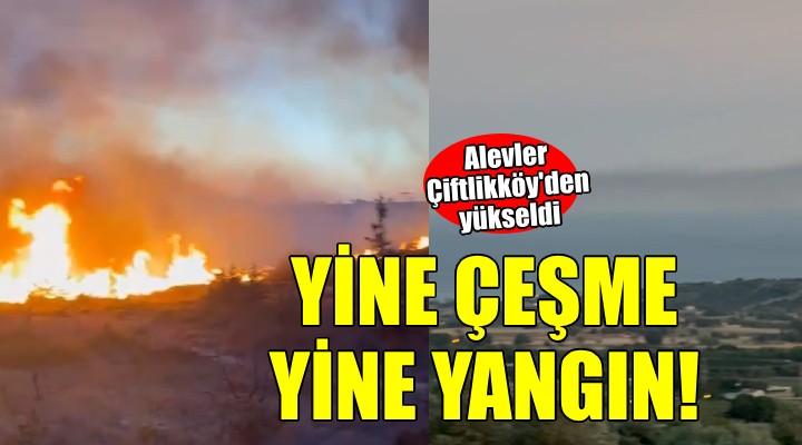 SONKALE?ZM?R-Çe?me'de art arda meydana gelen yang?nlara bir yenisi daha eklendi. Bugün Mersin koyunda ç?kan yang?ndan sonra saat 20.30 s?ralar?nda Çitlikköy'de zeytinlik alanda da alevler yükseldi.