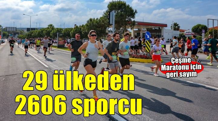 Salomon Çe?me Maratonu'nda yer almak isteyen sporcular, kay?tlara yo?un ilgi gösterdi. Bu sene 42K’l?k parkurun da eklenmesiyle maraton özelli?i elde eden organizasyona 29 ülkeden 2 bin 606 sporcu kay?t yapt?rd?. Salomon Çe?me Maratonu’nda Türkiye’nin yan? s?ra; Yunanistan, Tacikistan, ?sviçre, ABD, Rusya, Hollanda, ?srail, Etiyopya, Meksika, Birle?ik Krall?k, Fas, ?ran, Kanada, Almanya, Litvanya, Norveç, Slovenya, Endonezya, Arnavutluk, Bulgaristan, Fransa, Suriye, S?rbistan, Hindistan, ?talya, Romanya, Malezya ve KKTC’den ko?u tutkunlar? yer alacak. Organizasyonun 42K’l?k parkurunda 89, 21K’l?k parkurunda 517, 10K’l?k parkurunda ise 2 bin sporcu ter dökecek. Parkurlarda bin 12 kad?n, bin 594 erkek ko?ucu yer alacak.