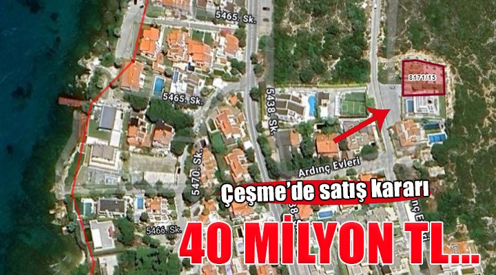Çe?me Belediyesi, mülkiyeti kendisine ait Il?ca Mahallesi'ndeki 8171 ada 15 parseldeki 614 metrekarelik ta??nmaz için sat?? karar? ald?. Arsa statüsündeki ta??nmaz için 40 milyon lira muhammen bedel biçildi.
