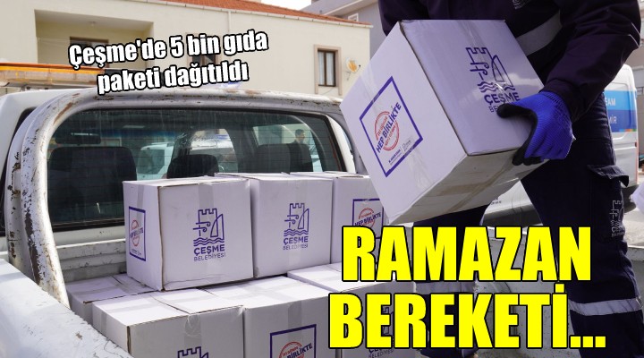 Ramazan ay?na girerken haz?rl?klar?n? tamamlayan Çe?me Belediyesi her y?l oldu?u gibi bu y?l da ihtiyaç sahipleri için g?da paketi haz?rlad?. Mahalle muhtarlar?yla ortak çal???larak mahallede bulunan ihtiyaç sahipleri tespit edilirken, öncelik ya?l?, engelli ve ihtiyaç sahipleri olarak belirlendi. Yakla??k 5 bin adet g?da paketi vatanda?lara da??t?ld?.