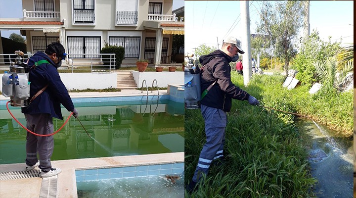 Y?l boyunca larva, uçkun ve ha?erelere kar?? mücadele çal??malar? Çe?me Belediyesi Temizlik ??leri Müdürlü?ü koordinesinde ?zmir Büyük?ehir Belediyesi taraf?ndan olu?turulan 6 ayr? ekip ile belirli bir program dahilinde periyodik olarak yap?lmaya devam ediyor. Karasinek ve sivrisinek ile mücadele kapsam?nda; ilçedeki tüm çöp konteyn?rlar?, çöp toplama alanlar?, hayvan bar?naklar?, kamusal alanlardaki park, bahçe, yol kenar? vb yerlerdeki a?aç ve ye?il alanlar bitki zararl?lar?na kar?? vatanda?lar?n rahatça kullanabilmeleri için ilaçlan?yor.