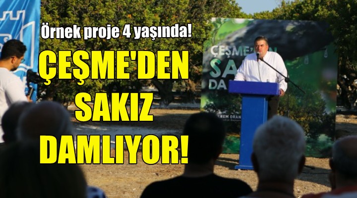 Törende sak?z a?açlar?na ilk çizi?i atan Çe?me Belediye Ba?kan? M. Ekrem Oran, “Kurdu?umuz Tar?msal Hizmetler Müdürlü?ümüz ile Çe?me’deki üreticilerimizi destekliyor. Tohum merkezimizde üretti?imiz Karak?lç?k bu?day?, Çe?me Anasonu, Çe?me Kavunu, Beyaz so?an gibi yerel de?erlerimizi piyasan?n üzerinde bir bedelle al?m garantisi vererek çiftçilerimize da??t?yoruz. Bütün bunlar?n içinde Sak?z bizim en k?ymetlilerimizden biri. Elli y?l aradan sonra dört y?l önce yeniden ba?latt???m?z sak?z hasad? etkinli?imizle, sa?l?k, kozmetik ve g?da sektöründe inan?lmaz bir yeri, ciddi ekonomik getirisi olan Sak?z a?açlar?m?z? ço?altmaya, dünyada sak?z üretiminde söz sahibi olmak için ad?mlar atmaya ba?lad?k” dedi.