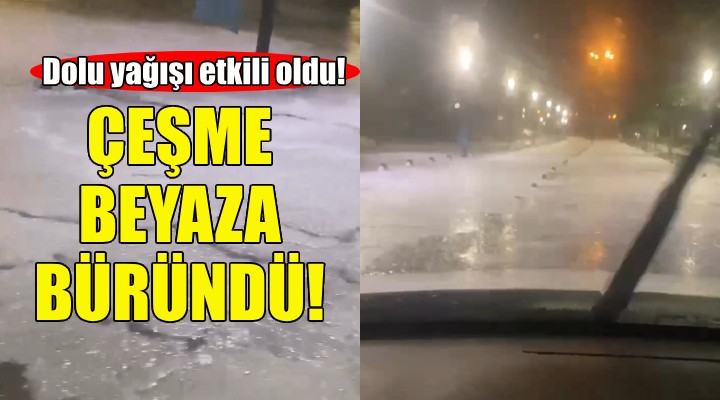 Meteoroloji Genel Müdürlü?ü'nün uyar?s?n?n ard?ndan ?zmir'in Çe?me ilçesinde gece saatlerinde sa?anak ya????n ard?ndan dolu etkili oldu. F?nd?k büyüklü?ündeki dolu ya???? nedeniyle cadde ve sokaklar k?sa sürede beyaza büründü. Gördükleri manzara kar??s?nda ?a?k?nl?k ya?ayan vatanda?lar, cadde ve sokaklar? cep telefonu ile görüntüledi.