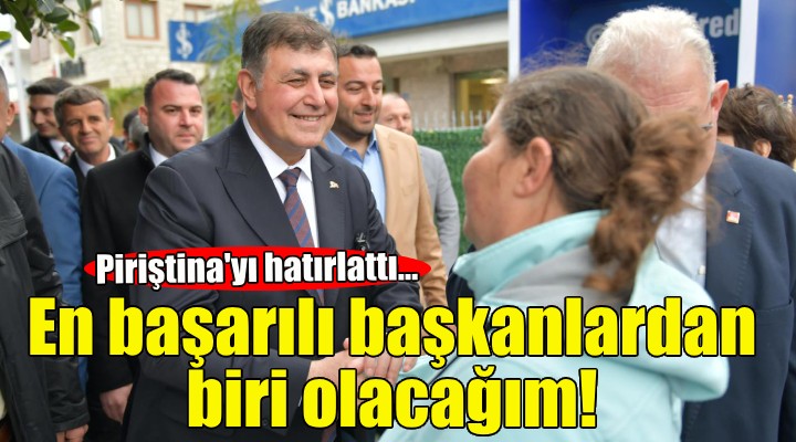 ?zmir'i yönetme modelini aç?klarken ?zmir Büyük?ehir Belediyesi'nin efsane Belediye Ba?kan? merhum Ahmet Piri?tina'y? da hat?rlatan Tugay, “Ahmet Piri?tina ba?kan?m?z?n dönemini gördük. Daha eskiden Behçet Uz gibi de?erli insanlar vard?. Onlar? sadece okuyor, biliyoruz. Ama ben eminim, bu milleti seven gerçekten hizmet etmek isteyen birileri böyle dü?ünen insanlar olmal?. Ben de böyle bir insan olaca??m” dedi.
