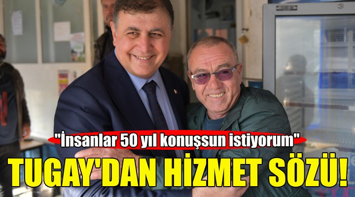 Dikili Avc?lar ve At?c?lar Derne?i’ni ziyaret eden Tugay, “Ben ?zmir’e a????m, öyle bir çal??ma ortaya koyay?m ki insanlar 50 y?l konu?sun istiyorum. Burada otopark sorunu oldu?unu biliyoruz. Sizi ma?dur etmen bu hizmeti de buraya getirece?iz” diye konu?tu.
