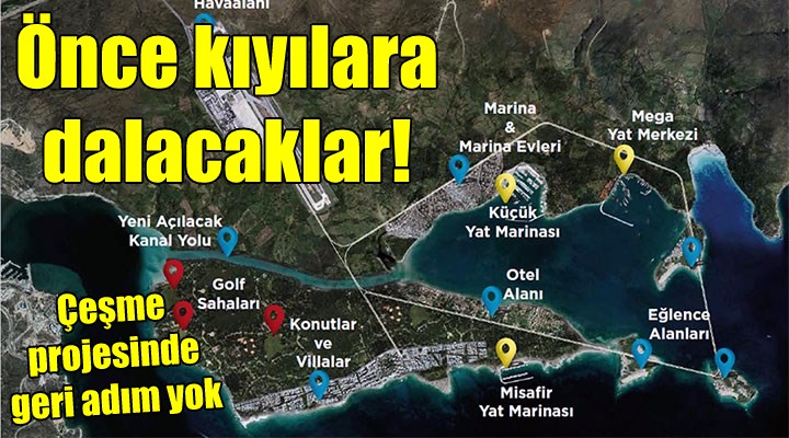 Bakanl???n cevabi aç?klamas?nda, "Ege Turizm Merkezi (Çe?me Kültür ve Turizm Koruma ve Geli?im Bölgesi) Çe?me etab? proje a?amas?nda olup planlama a?amas?na geçmeden önce ba?ta bölgedeki sivil toplum kurulu?lar? olmak üzere bölge belediyeleri ile i?birli?i içinde ve görü?leri de al?narak çal??malar yap?lmaktad?r. Yatay mimarinin esas al?nd???, dü?ük yap?la?ma yo?unlu?u olan projenin k?y? band?nda minimum 100 metre ile 1500 metreye varan derinliklerde genel kullan?ma aç?k alanlar olacakt?r. Bu sebeple, öncelikle k?y? band?ndaki özel mülkiyet arazilerinin kamula?t?r?lmas? gerekmektedir" denildi.