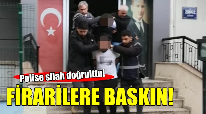 Bayrakl? ?lçe Emniyet Müdürlü?ü Suç Önleme ve Soru?turma Büro Amirli?i ile Devriye Ekipler Amirli?i, 'Kasten Öldürme' suçu ba?ta olmak üzere 32 suç kayd? bulunan A.Y. (34) ile çok say?da h?rs?zl?ktan kayd? bulunan B.Ç.'nin (28) cezaevinden firar etti?i ve Bayrakl?’daki bir adreste sakland?klar? bilgisini ald?. Bunun üzerine harekete geçen ekipler, firari hükümlülerin 1620/5 sokaktaki bir adreste sakland???n? tespit etti. Koordineli bir ?ekilde adrese yakla?an polis, operasyon dü?mesine bast?. Polis ekiplerinin geldi?ini fark eden iki firari evin arka kap?s?ndan kaçmaya çal??t?. Polis ile kar?? kar??ya gelen iki firari hükümlü, polis ekiplerine tabanca do?rulttu. Polisin uyar?s? üzerine tabancalar?n? b?rakan firari hükümlüler A.Y. ile B.Ç., gözalt?na al?nmamak için direndi. Gözalt?na al?nan 2 cezaevi firarisi hükümlüler, emniyete götürüldü. Öte yandan, ?üphelilerden 2 tabanca, b?çak, uyu?turucu hap ele geçirildi. Yap?lan kontrollerde, A.Y.'nin hakk?nda kesinle?mi? 27 y?l 7 ay, B.Ç.'nin ise 11 y?l 6 ay hapis cezas? oldu?u ö?renildi. ??lemleri tamamlanan A.Y. ile B.Ç. cezaevine teslim edildi.