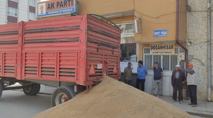 Konya'n?n Do?anhisar ilçesinde de Harun Su isimli bir çiftçi, TMO'ya bu?day?n? veremeyince, mahsulünü AK Parti Do?anhisar ?lçe Ba?kanl??? binas?n?n önüne döktü. AK Parti'nin ?lçe Ba?kanl??? önünde aç?klama yapan Harun Su, yetkililerin sorunlar?na çözüm üretmedi?ini dile getirdi.