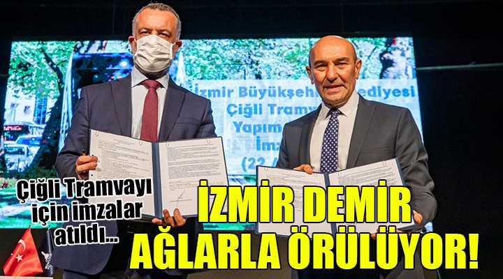 ?zmir Büyük?ehir Belediyesi toplu ula??m? ça?da? standartlara ta??ma hedefi do?rultusunda rayl? sistem yat?r?mlar?na bir yenisini daha ekliyor. ?zmir’de çevreci, ekonomik ve konforlu toplu ula??m?n önemli unsurlar?ndan biri haline gelen tramvay hatt? ?imdi de Çi?li’ye uzan?yor. ?zmir Büyük?ehir Belediye Ba?kan? Tunç Soyer, Çi?li Tramvay? Yap?m ?halesi’ni kazanan firma ile sözle?me imzalad?.