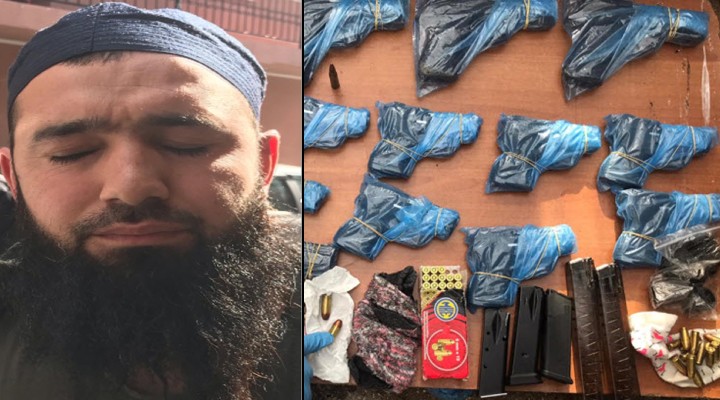 Yap?lan aramada de?i?ik noktalarda gömülü halde, 9 mm çap?nda üzerinde seri numaras? bulunmayan S?g Sauer P 226 marka 13 tabanca, 7,65 mm çap?nda üzerinde seri numaras? bulunmayan S?g Sauer P 226 marka 11 tabanca, 9 mm çap?nda 12 tabanca ?arjörü (2'si uzun ?arjör), 7,65 mm çap?nda 39 tabanca ?arjörü, ibaresiz çifte doldurma av tüfe?i, bol miktarda de?i?ik çap/marka tabanca fi?e?i, 100 lt hacminde doldur-bo?alt olarak kullan?lan mavi renkli plastik bidon, Mengene Aleti, silah bak?m temizlik malzemeleri, 10-15 lt hacminde 2 plastik bidon, (15 lt içinde tabancalar elde edilmi?tir) Üzerinde Kelime-i Tevhid ibarelerinin yer ald??? ye?il renkli sözde cihad bayra??, ak?ll? cep telefonu ve sim kart?, 5 sprey boya kutusu, R.G. ad?na düzenlenmi? yeni kimlik kart? ele geçirildi.