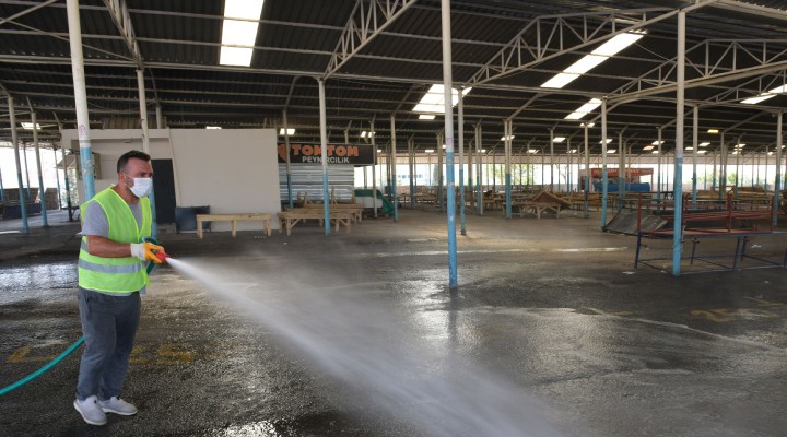 Çi?li’de kurulan pazaryerlerinde, pazar sonras? yap?lan rutin temizli?in ard?ndan detayl? temizlik ve dezenfekte çal??mas? ba?lat?ld?. Çi?li Belediyesi Temizlik ??leri Müdürlü?ü ekipleri yapt?klar? çal??malarda pazaryerlerini dezenfektanl? sularla y?karken, pazaryeri çevresindeki tüm çöp konteynerlerini dezenfekte etti. Pazaryerlerindeki tüm mazgallar da sökülerek kanallar hem y?kand? hem de hastal?k ta??yan vektörlere kar?? ilaçlama çal??mas? yap?ld?. Belediye temizlik i?leri ekipleri bu çal??malar? ilçede bulunan Egekent, Evka 5, Ata?ehir, Harmandal?, Yenimahalle, Küçükçi?li Kom?uo?lu, Evka2, Ayd?nl?kevler, Maltepe, Yakakent pazaryerlerinde yürütüyor.