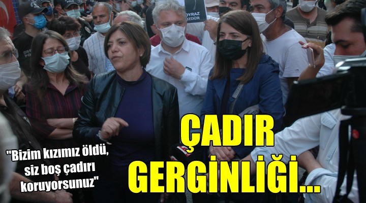 SONKALE?ZM?R-?zmir’de HDP ?l Binas?’na düzenlenen ve 38 ya??ndaki Deniz Poyraz’?n öldürüldü?ü sald?r?n?n ard?ndan çad?r gerginli?i ya?and?. Evlatlar?n?n terör örgütü PKK taraf?ndan da?a kaç?r?ld??? iddia eden 2 ailenin aylard?r HDP binas? önünde kurdu?u çad?r, HDP E? Genel Ba?kan Yard?mc?s? Meral Dan?? Be?ta? ve HDP ?zmir Milletvekili Murat Çepni’nin tepkisini çekti. Bina önündeki anma ve protesto sonras?nda kalabal?k da??l?nca Be?ta? ve Çepni, çad?r?n önünde nöbet tutan polis ekiplerinin yan?na gitti. Be?ta?, sald?r?ya kurulan bu çad?r?n neden oldu?unu, HDP’nin hedef gösterildi?ini belirterek polis amirine tepki gösterdi.