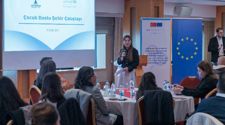 Çal??tayda UNICEF Sosyal Politika Sorumlusu Dr. Görkem Güner, “Çocuk Odakl? Yerel Yöneti?im” konusunda sunum yapt?. ?zmir Büyük?ehir Belediyesi ile çok k?sa zamanda çok fazla yol kat ettiklerini kaydeden Güner, “?zmir Büyük?ehir Belediyesi, Çocuk Dostu Kent yolundaki çal??malar?yla UNICEF’in gerçekle?tirdi?i birçok faaliyette yer al?yor. ?zmir Büyük?ehir Belediyesi’nin e?itim, sa?l?k gibi pek çok çocuk odakl? hizmeti var. Anlat?lanlar buz da??n?n görünen yüzü. Asl?nda yapt???n?z her hizmet çocu?a dokunuyor. Altyap?s?n? yapt???n?z içme suyu hatlar? çocu?un suya eri?im hakk?n? sa?l?yor. Döktü?ünüz asfalt, çocu?un e?itime eri?im hakk?n? sa?l?yor” ifadelerini kulland?.