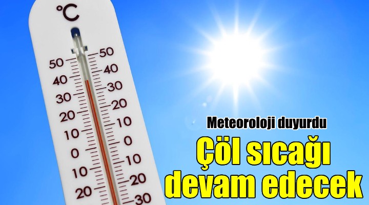 Meteoroloji 2. Bölge Müdürlü?ü, ?zmir, Ayd?n, Manisa, Bal?kesir ve Çanakkale'de etkili olan s?cak hava dalgas?n?n etkisinin 24 Temmuz'a kadar artarak devam edece?ini aç?klad?. Son de?erlendirmelere göre, hava s?cakl?klar?n?n mevsim normallerinin 3 ile 6 derece üzerine ç?kmas?n?n beklendi?i bildirildi. ?llere göre beklenen hava s?cakl?klar? ?öyle; ?zmir 37-38, Ayd?n 42-44, Çanakkale 34-40, Bal?kesir 33-39, Manisa ise 39-43 derece. Meteoroloji yetkilileri, ba?ta kronik rahats?zl??? olanlar, ya?l?lar ve çocuklar? günün en s?cak saatleri olan 11.00-16.00 saatleri aras?nda mümkün olmad?kça d??ar? ç?kmamalar? konusunda uyard?.