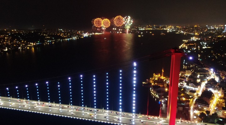 Üsküdar'da düzenlenen havai fi?ek gösterisi saat 21.00 s?ralar?nda ba?lad?. Birbiri ard?ndan renk renk havai fi?ekler gökyüzünü ayd?nlatt?. Kilometrelerce bile uzaktan görülebilen havai fi?ek gösterisine ?stanbul Bo?az?'n?n kenar?na toplanan ?stanbullular da ilgi gösterdi. 15 Temmuz ?ehitler Köprüsü'nden geçen birçok sürücü de otomobillerini durdurarak dakikalarca görsel ?öleni izledi.