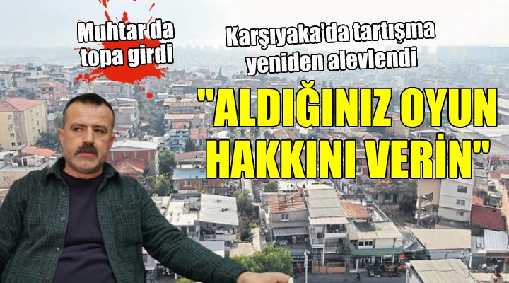 ?zmir Büyük?ehir Belediyesi ?mar Komisyonu AK Parti Meclis Üyesi Hüsnü Boztepe'nin "Say?n belediye ba?kan? bölgede tercihin hangi kriterlerle yol kenar?ndan ba?lad???na yan?t vermeli. Planlarda kamu yarar? yok, vatanda?lar?n talebi yok say?lm??" diyerek Belediye Ba?kan? Cemil Tugay'? ele?tirmesinin ard?ndan muhtar Özay Da?han da topa girdi.