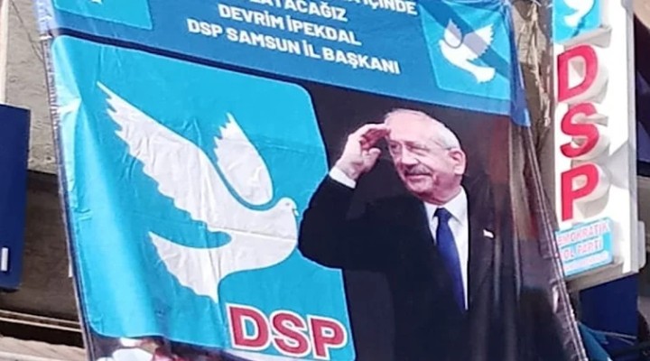 DSP Samsun ?l Ba?kanl??? da Genel Ba?kan Aksakal'a tepki için binas?na Millet ?ttifak? Aday? ve CHP lideri Kemal K?l?çdaro?lu'nun posterini ast?.