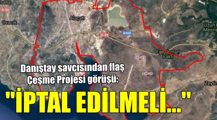 SONKALE?ZM?R-"?zmir'in Kanal ?stanbulu" olarak adland?r?lan, yüzde 98'lik proje alan? orman, mera, deniz, ada k?y? ve S?T alanlar? olarak belirlenen Çe?me Projesi'yle ilgili fla? bir geli?me ya?and?. Dan??tay Savc?s? Emel Çelik, Çe?me Kültür ve Turizm Bölgesi’nin alan belirleme karar?n?n iptali yönünde görü? yazd?.