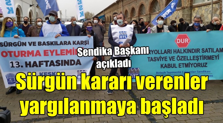 KESK'e ba?l? BTS ?zmir ?ubesi'nin sürgün edilen i?çiler için ba?latt??? oturma eylemi 13. haftas?na girdi. Ya?mur ve so?uk havaya ra?men Alsancak Gar önündeki eyleme yakla??k 30 demiryolu i?çisi kat?l?rken, "Demiryolu halk?nd?r, sat?lamaz", "Sürgünler bizi y?ld?ramaz" sloganlar? at?ld?. Hükümete sürgünlerin son bulmas? ça?r?s? yap?ld?. KESK E? Genel Ba?kan? Aysun Gezen'in de kat?ld??? oturma eyleminde bas?n aç?klamas?n? BTS ?zmir ?ube Ba?kan? Erdal Akyol okudu.