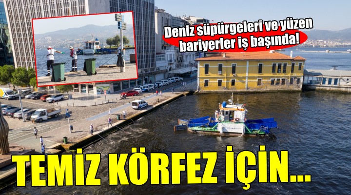 ?zmir Büyük?ehir Belediyesi ?zmir Körfezi’ni korumak amac?yla her gün aral?ks?z yüzey temizli?i yap?yor. Yüzey temizli?i amac?yla in?a edilmi? "Mavi Körfez" filosundaki gemilerle körfez yüzeyini temizleyen Büyük?ehir Belediyesi ekipleri temizlik çal??malar?n? e? zamanl? olarak karadan da yürütüyor. Çevre 1, Mavi Körfez 2 ve Mavi Körfez 3 gemileri ile her gün saat 07.00’den itibaren gün boyunca körfezde temizlik çal??malar? sürdürüyor. Ayr?ca, Mavi Körfez 3 Süpürge gemisi, Körfez'de ya?anabilecek herhangi bir petrol s?z?nt?s?na ilk müdahaleyi yapabilecek donan?ma da sahip. ?ZSU Genel Müdürlü?ü ise derelerde kurdu?u bariyerler sayesinde at?k malzemelerin denize ula?mas?n? engelliyor.