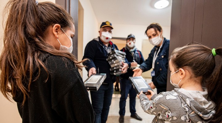 ?zmir Büyük?ehir Belediyesi'nin depremzedelere yönelik desteklerine sivil toplum örgütlerinin katk?s? da sürüyor. Büyük?ehir Belediyesi taraf?ndan ba?lat?lan dayan??ma kampanyas?na Ankara Beysukent Rotary Kulübü'nden destek geldi. ?stanbul Maratonu’na 43 sporcusuyla kat?lan Beysukent Rotary Kulübü, ba?latt?klar? “Çocuklar?m?z E?itimden Uzak Kalmas?n” projesi kapsam?nda Ba?kent Üniversite’sinin de deste?iyle uzaktan e?itim olana?? bulunmayan depremzede çocuklara tablet hediye etti. Tabletler, 30 Ekim ?zmir depreminde evleri y?k?ld??? veya hasar gördü?ü için ?zmir Büyük?ehir Belediyesi taraf?ndan Uzundere'deki konutlara yerle?tirilen ailelerin çocuklar?na da??t?ld?.