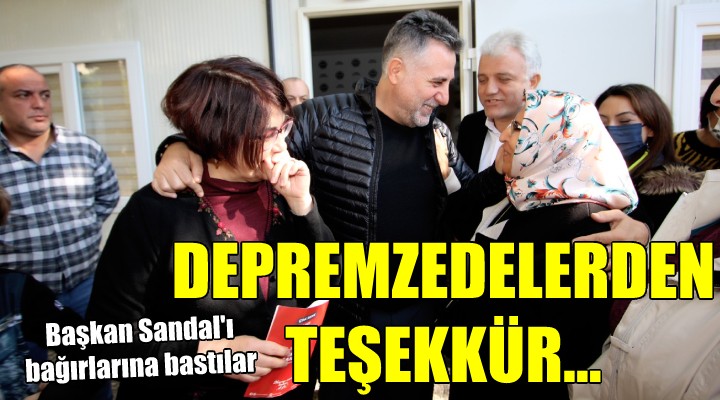Daha sonra söz alarak memnuniyetlerini ifade eden depremzedeler, Ba?kan Sandal’a ilk günden itibaren gösterdi?i özveri, kararl?l?k, tüm depremzedeler ad?na verdi?i mücadele ve desteklerinden dolay? te?ekkür etti.