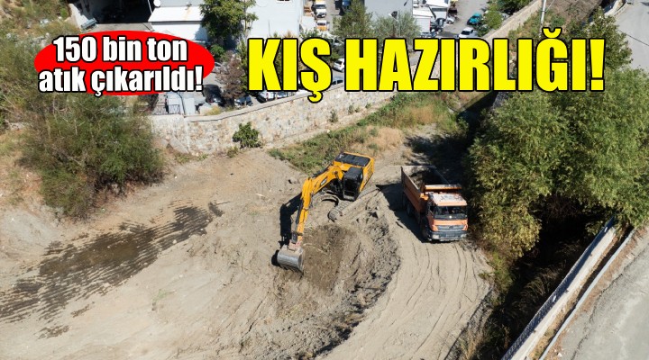 ?zmir Büyük?ehir Belediyesi ?ZSU Genel Müdürlü?ü, k?? aylar?nda ya?anabilecek su bask?nlar?n?n ve di?er olumsuzluklar?n önüne geçmek için dere yat?klar?ndaki temizlik çal??malar?n? h?zland?rd?. 30 ilçede yürütülen çal??malar kapsam?nda dereler kö?e bucak temizlendi. A?ustos ay?nda Yamanlar bölgesinde ya?anan orman yang?n? nedeniyle binlerce metrekare alan?n zarar gördü?ü Kuzey Bölgesi’ndeki çal??malar? tamamlay?p merkez bölgeye geçen ekipler ise k?? temizli?inde 150 bin ton malzemeyi dere yata??ndan ç?kard?.