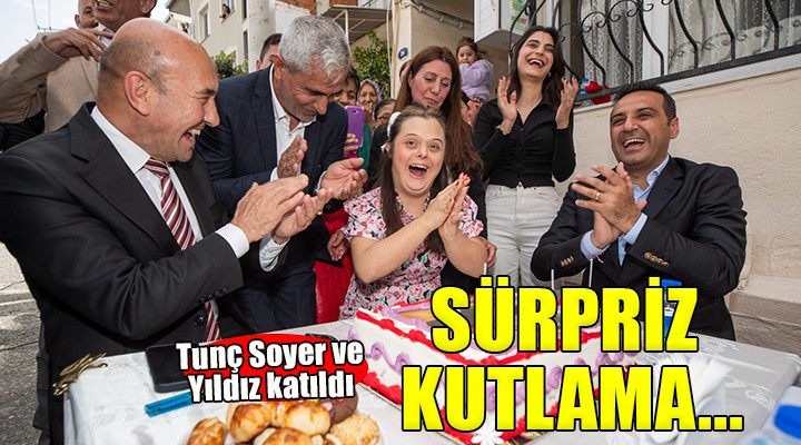 ?zmir Büyük?ehir Belediye Ba?kan? Tunç Soyer, Çi?li’de ya?am?n? sürdüren down sendromlu Dilan Özer’e sürpriz yaparak do?um günü kutlamas?na kat?ld?. Dilan Özer’in evinin önünde yap?lan kutlamada Ba?kan Soyer’e Cumhuriyet Halk Partisi Çi?li Belediye Ba?kan Aday? Onur Emrah Y?ld?z da e?lik etti. Ba?kan Soyer’i kar??s?nda görünce mutlu anlar ya?ayan Dilan pastas?n?n mumlar?n? alk??lar e?li?inde heyecanla üfledi. Dilan’?n ailesi ve yak?nlar? da bu güzel tablo kar??s?nda duygu dolu anlar ya?ad?. Dilan’?n do?um gününü kutlayan Ba?kan Soyer, “?n?allah her zaman böyle güler yüzle huzurla bir arada olun. Uzun ömürler diliyorum. Nice mutlu y?llara” dedi.
