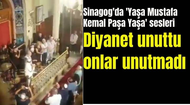 Yahudi cemaatinin yay?n organ? ?alom'un payla?t??? görüntülerde, Büyükada sinagogunda ?ark?c? Cenk Rofe'n ?zmir Mar??'n? söylerken, Yahudi vatanda?lar da alk?? tutarak, "Ya?a Mustafa Kemal Pa?a" dediler.