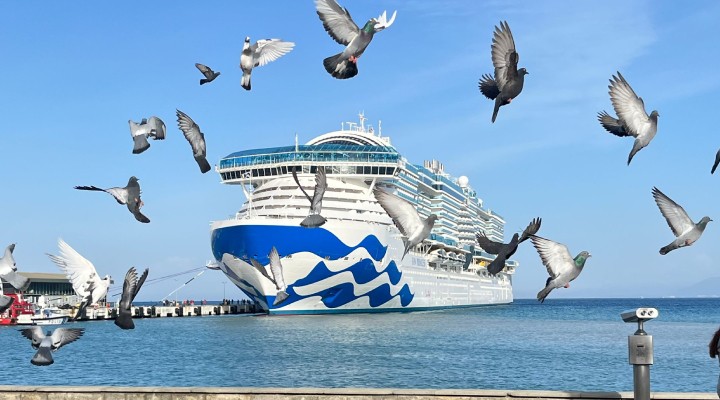 Dünyan?n en büyük ve yeni kruvaziyerlerinden 345 metre uzunlu?unda ve 175 bin 500 groston a??rl???ndaki ?talya Bayrakl? Sun Princess, sabah saatlerinde Ku?adas? Liman?’na yana?t?. Bu y?l suya indirilen ve Ku?adas?’na ilk seferini yapan kruvaziyer ile kente ço?unlu?u ABD vatanda?? olan 3 bin 745 turist ve 1675 mürettebat geldi. Geminin kente ilk seferini gerçekle?tirmesi nedeniyle Ku?adas? Liman? içerisinde tören düzenlenerek turistler, Ku?adas? Belediye Bandosu ve halk oyunlar? ekiplerinin gösterileri e?li?inde kar??land?. Sun Princess 2024 y?l?nda Ku?adas?'na 3 sefer daha yapacak.