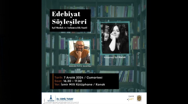 ?zmirlilerin ilgiyle takip etti?i ?zmir Büyük?ehir Belediyesi Edebiyat Söyle?ileri, yazar I??l Madak’? edebiyatseverlerle bulu?turacak. 7 Aral?k Cumartesi günü 16.30’da ?zmir Milli Kütüphane’de ücretsiz olarak düzenlenecek söyle?ide Madak’?n öykü kitab? “Anlams?zl?k Saati” üzerine konu?ulacak. Prof. Dr. Nevzat Kaya moderatörlü?ünde düzenlenecek söyle?ide, I??l Madak’?n öykülerinden yola ç?karak yüzle?meleri, ac?lar? ve ya?amdaki anlams?zl?k saatleri üzerine de sohbet edilecek.