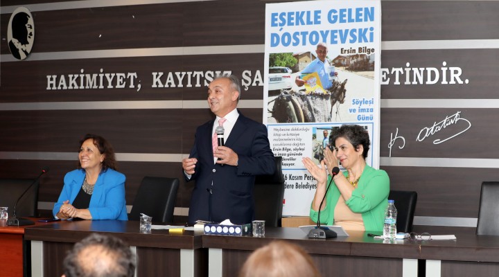 Türkiye’nin dört bir yan?n? köy köy dola?arak çocuklara kitap-k?rtasiye malzemesi da??tan, ‘E?ekle Gelen Dostoyevski’ kitab?n?n yazar? olan Ersin Bilge, söyle?i ve imza günü için Narl?dereli vatanda?larla bir araya geldi. Narl?dere Belediyesi ve Ça?da? Erzincanl?lar E?itim Kültür Yard?mla?ma ve Dayan??ma Derne?i’nin i?birli?iyle Atatürk Kültür Merkezi’nde vatanda?larla bulu?an Ersin Bilge, ?imdiye kadar 7 bin çocu?a kitap ve k?rtasiye malzemesi da??tt??? serüvenin hikâyesini Narl?dereli yurtta?larla payla?t?.