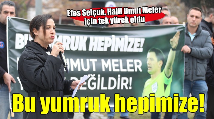 Ankaragücü- Rizespor Maç?nda Efes Selçuklu hakem Halil Umut Meler’in u?rad??? sald?r? sonras? kentte faaliyet gösteren birçok sivil toplum örgütü ve yurtta?lardan da tepki ya?d?. Efes Selçuk Belediye Ba?kan? Filiz Cerito?lu Sengel’in ça?r?s?yla ?stasyon Meydan?’nda toplanan sivil toplum kurulu?lar? temsilcileri de yap?lan bu sald?r?y? k?nayarak tepkilerini dile getirdiler.