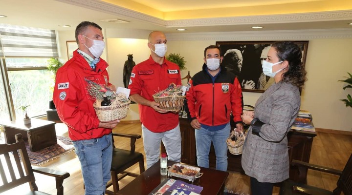 ?zmir Depremi’nde enkaz kald?rma çal??malar?na kat?lan Efes Selçuk’lu AKUT üyeleri, Efes Selçuk Belediye Ba?kan? Filiz Cerito?lu Sengel’i ziyaret ettiler.
