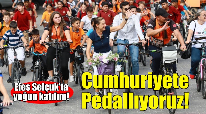 “Cumhuriyete Pedall?yoruz” etkinli?inde bisikletini al?p gelen her ya?tan kat?l?mc?yla birlikte Efes Selçuk’un sokaklar?nda bisiklet süren Efes Selçuk Belediye Ba?kan? Filiz Cerito?lu Sengel; “Hararetli hayat?m?z? hareketlendiriyoruz. Avrupa Hareketlilik Haftas? kutlu olsun” dedi.