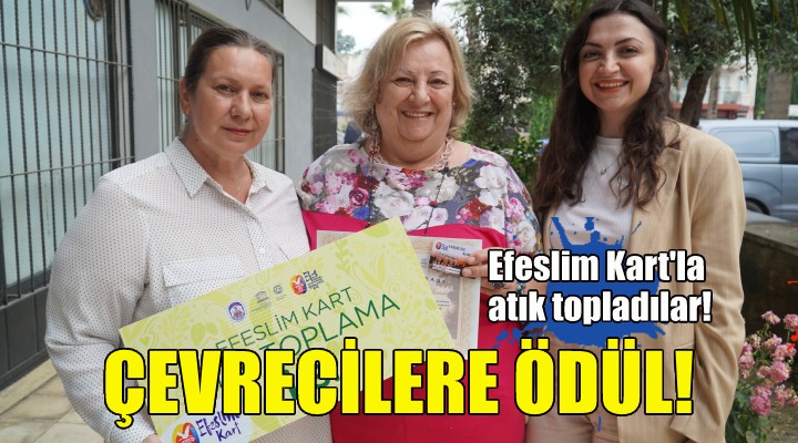 Efes Selçuk Belediyesi’nin, “Dar Gelirliye Destek”, Esnafa Can Suyu”, “Çevreye Dost” ve “E?itime Katk?” prensipleriyle hayata geçirdi?i Efeslim Kart Projesi kapsam?nda son bir y?lda Oya Alt?nel, Sabriye ?im?ek ve Fatma Vergi Çekilmez en çok at?k toplayan çevreci unvan? almaya hak kazand?. Kartlar?na yüklenen puanlarla e?itime katk? sunan, sokak hayvanlar?n?n beslenmesine destek olan çevreciler tüm Efes Selçuk halk?n? geri dönü?türülebilir at?k toplamaya ça??rd?.