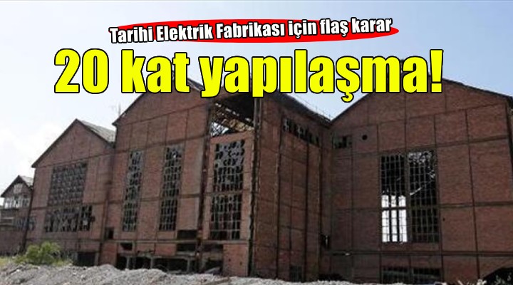SONKALE?ZM?R-Resmi Gazete'de yay?mlanan kararla; ?zmir'in simgeleri aras?nda bulunan Tarihi Elektrik Fabrikas? Alan? için ticaret ve turizm alan? kullan?m? öngören imar planlar? onayland?. Cumhursba?kan? Recep Tayyip Erdo?an imzal? kararla Konak Umurbey Mahallesi'ndeki parseller için 20 kata kadar yap?la?man?n önü aç?lm?? oldu.