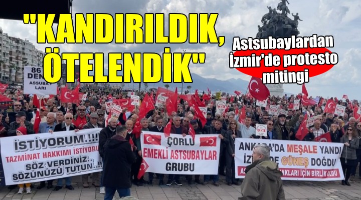 SONKALE?ZM?R-?zmir Gündo?du Meydan?'nda toplanan binlerce emekli astsubay özlük haklar?n?n verilmesi için hükümete ça?r? yapt?. CHP Genel Ba?kan Yard?mc?s? ve ?zmir Milletvekili Murat Bakan, ?Y? Parti ?zmir Büyük?ehir Belediye Ba?kan Aday? Ümit Özlale, ?ZDEDA kurucu Ba?kan? Haydar Özkan'?n da kat?ld??? protesto mitingine çevre illerden de büyük kat?l?m oldu.