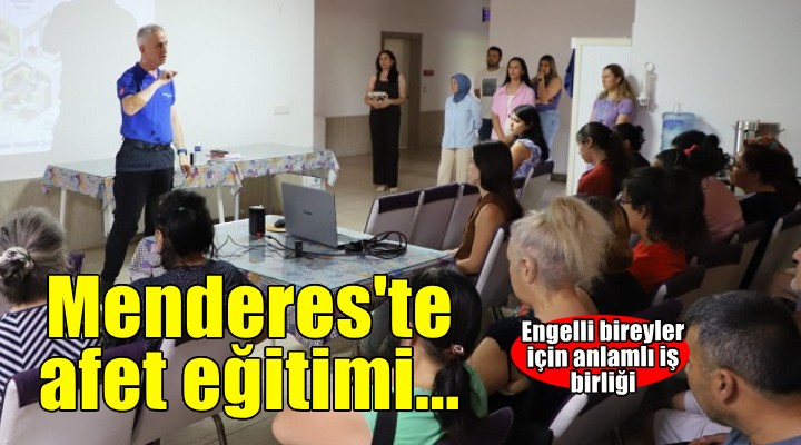 Menderes Belediyesi Afet ??leri Müdürlü?ü ile ?zmir Büyük?ehir Belediyesi Afet ??leri Daire Ba?kanl??? Afete Haz?rl?k ?ube Müdürlü?ü’nün i?birli?i devam ediyor. Daha önceleri belediye personeli için de verilmi? olan e?itimler bu kez engelli vatanda?lar için verildi. Menderes’in Ahmetbeyli Mahallesi’nde yer alan Özel Öz Bak?m Merkezi’nde deprem öncesi, deprem s?ras? ve sonras?nda yap?lacaklar, al?nmas? gereken önlemler anlat?ld?. E?itime kat?lan tüm personel ve engelli bireylere kat?l?m belgesi verildi.