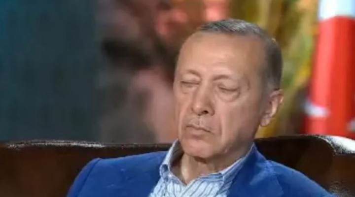Kar??s?ndaki gazeteci soru sorarken Erdo?an'?n gözlerinin kapand??? görüldü. Bu s?rada kameralar Erdo?an'?n görüntüsünü ekrandan çekti.